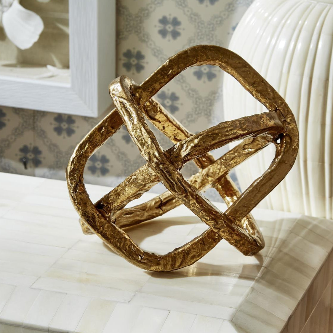 Add a touch of modern elegance to your living space with this set of golden paperweight sculptures. Crafted from iron, these sculptures showcase a unique design that combines form and function effortlessly. The golden finish adds a hint of glamour to any room, making them perfect for a stylish coffee table, shelf or desk. Handmade with precision, these sculptures are not only visually appealing but also durable.