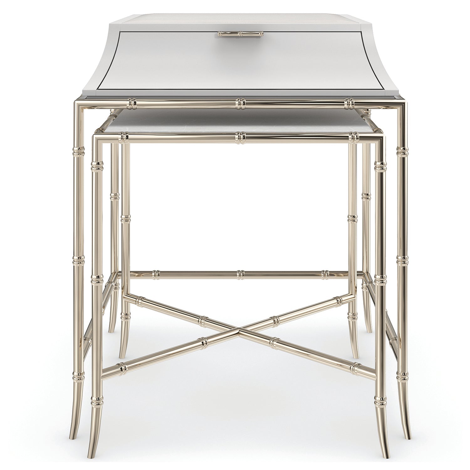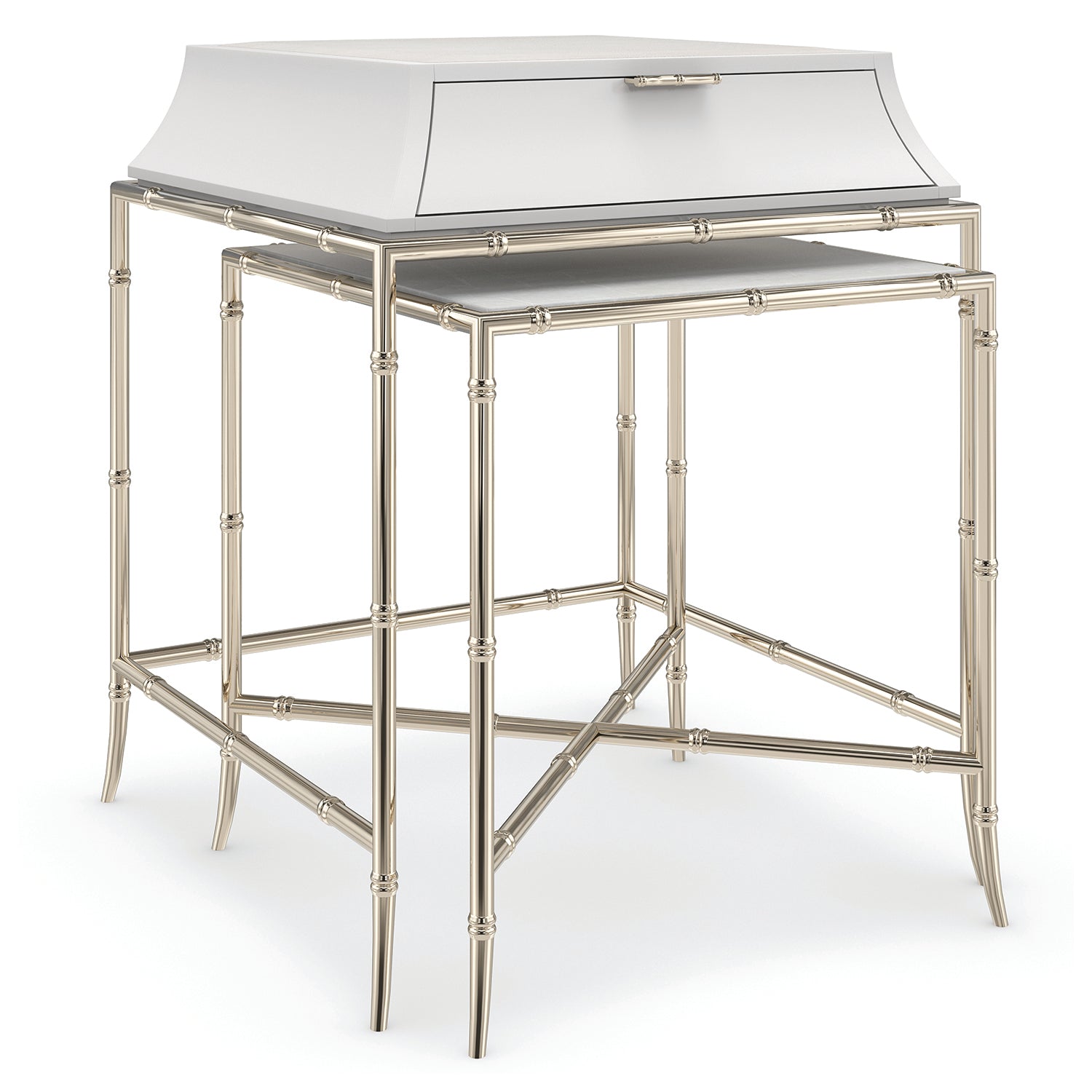 This simple yet elegant accent table beautifully blends modern materials with traditional Asian design influences. A luxe landing for a beverage or book, it features a Carrara white marble top, elevated on a faux bamboo metal frame and stretcher finished in a Whisper of Gold. Style on its own, or pair with our Ceylon Tall nesting table to add an easily accessible extra table when guests arrive.