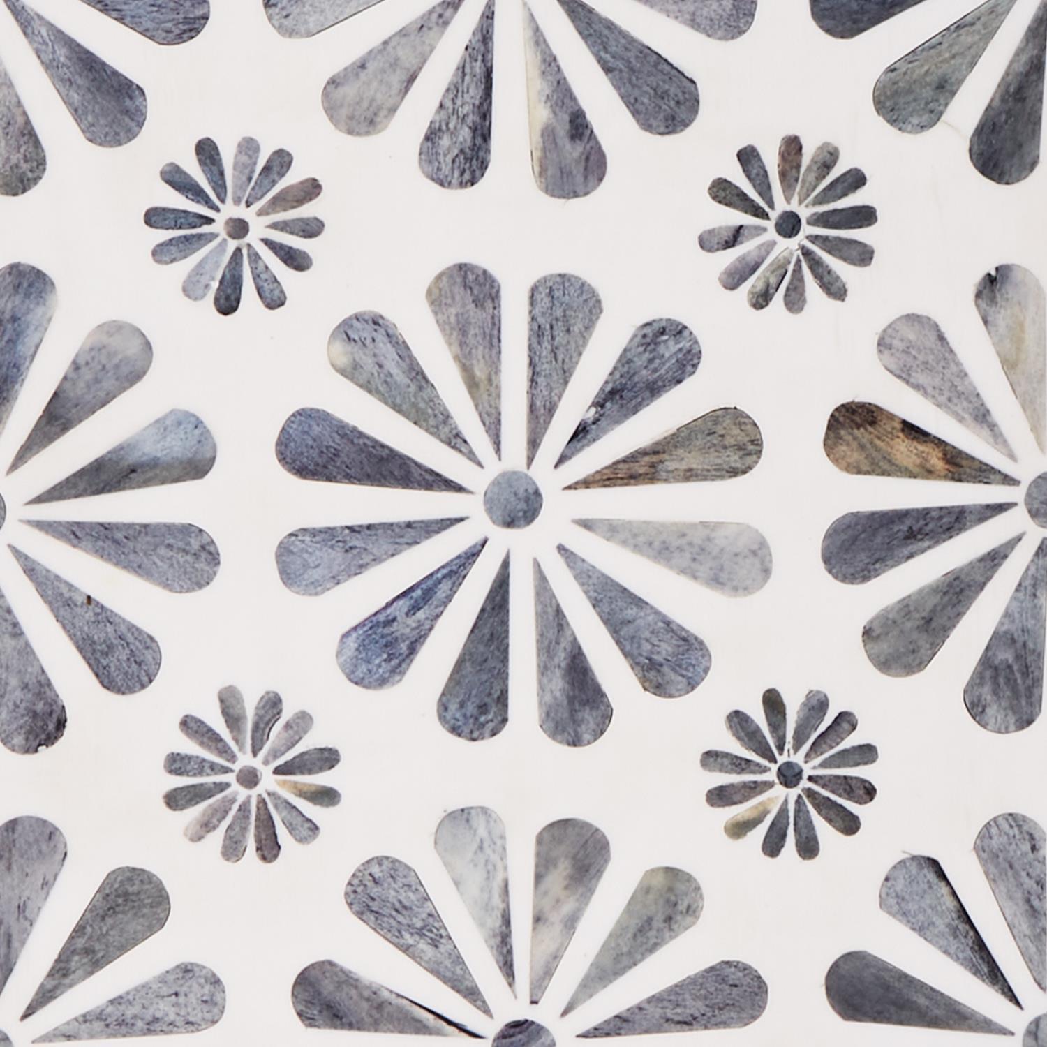 Handcrafted in a classic floral blossom, these mosaic pieces of natural bone and resin lend an artisanal touch to your tabletop and home. Our workshop is a specialist on the craft of mosaics, an art and skill passed down from generation to generation. Perfect as a distinctive accent in your home or to stow small treasures.