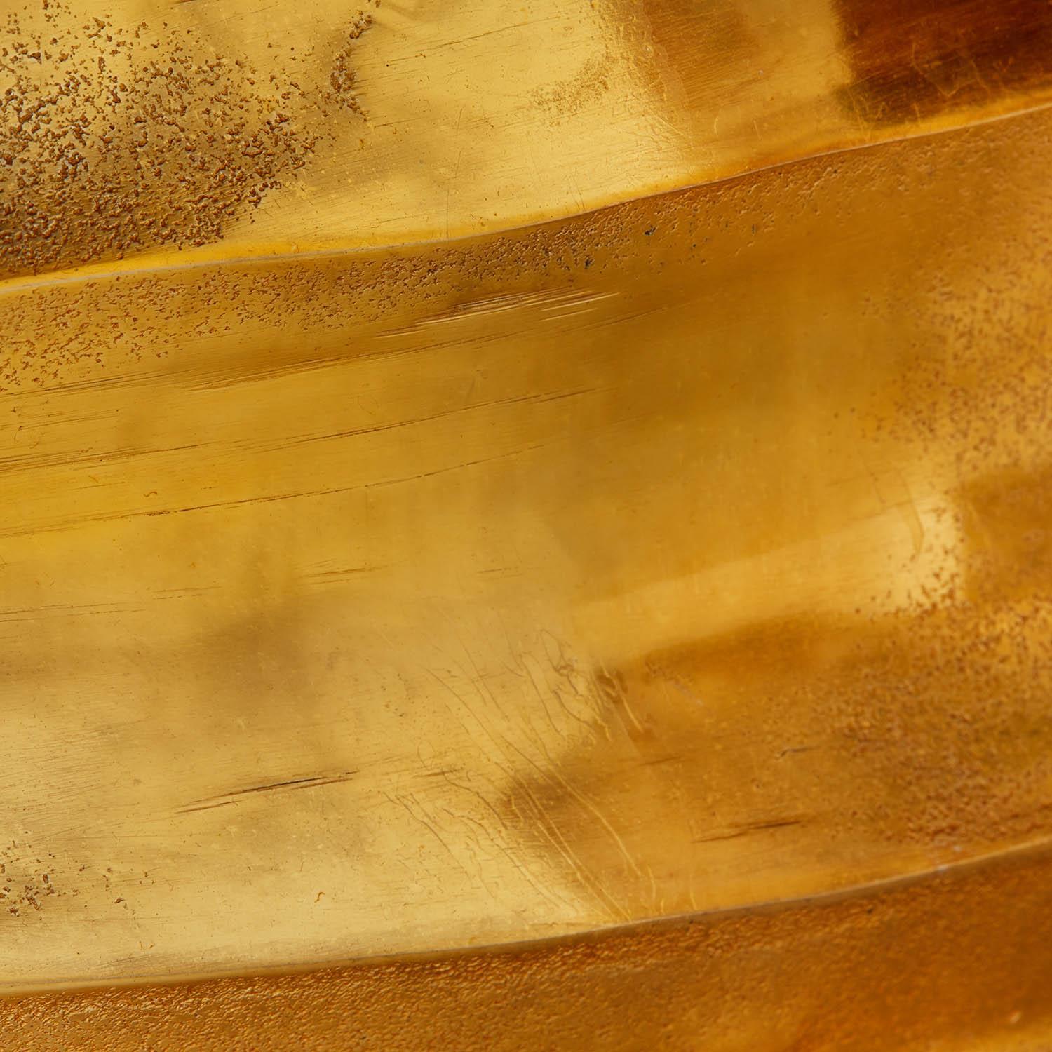Picture this: a secluded beach with a golden ocean. This set of two aluminum planters brings that idea to life. The metal is shaped into soft ripples and given a radiant gold finish.