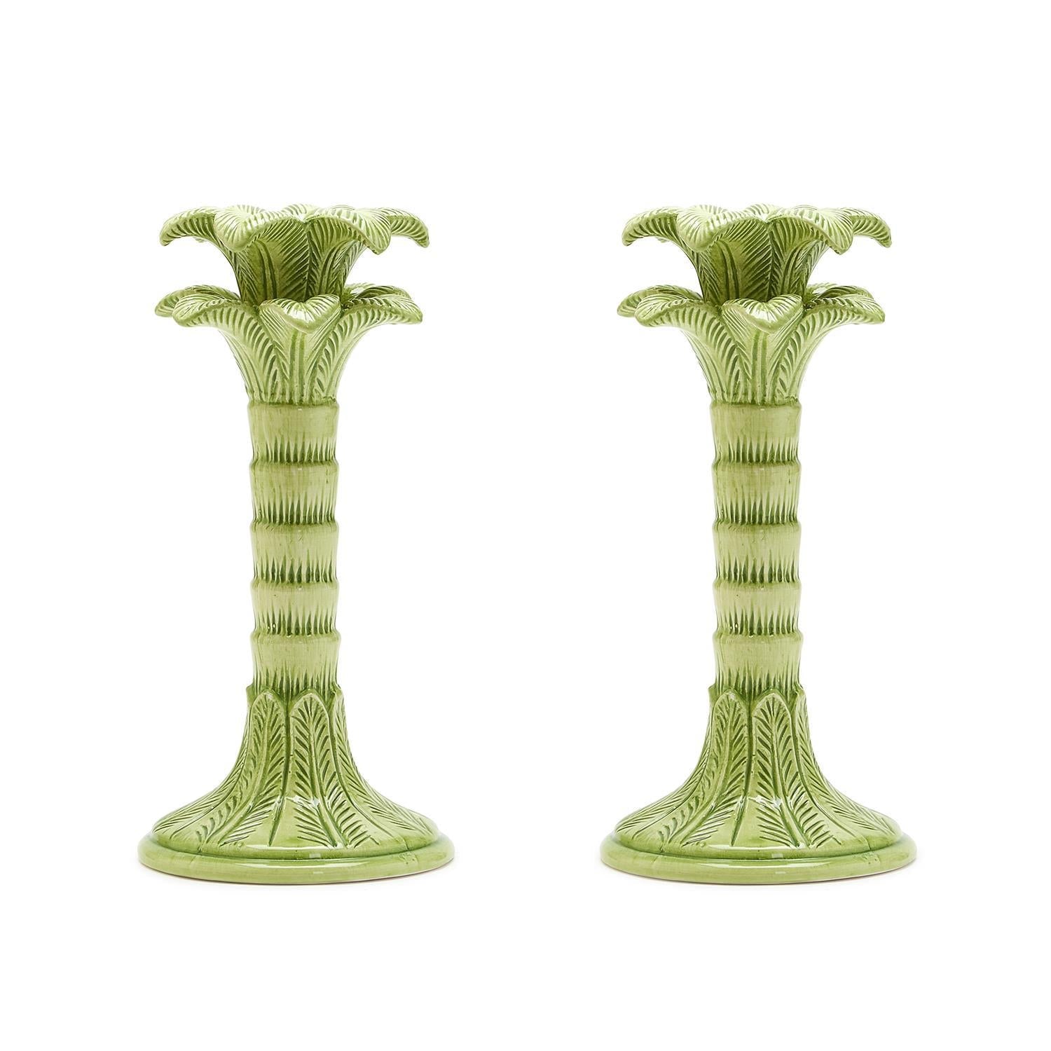 Green Palm Leaf Taper Candlestick Holder Set of 2