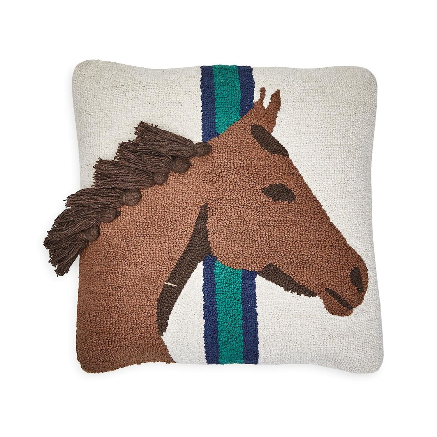 Horse Country Set of 2 Punch Embroidery and Tassel Accent Throw Pillows . 2 Designs: Horse Profile and Horse Shoe