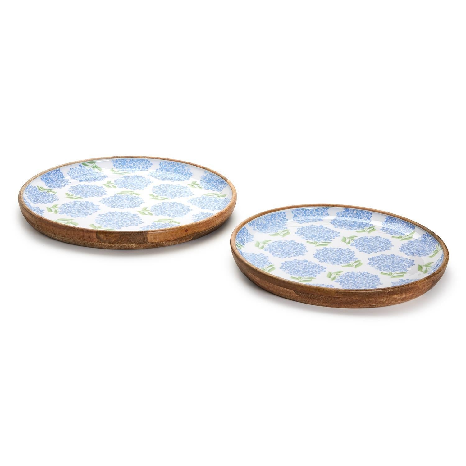Mango wood never looked so good after we enhanced these tabletop accessories with our beautiful hydrangea design. The soft and smooth enameled surface contrasted with the grain and natural look of the wood will serve as a great accessory in your home.