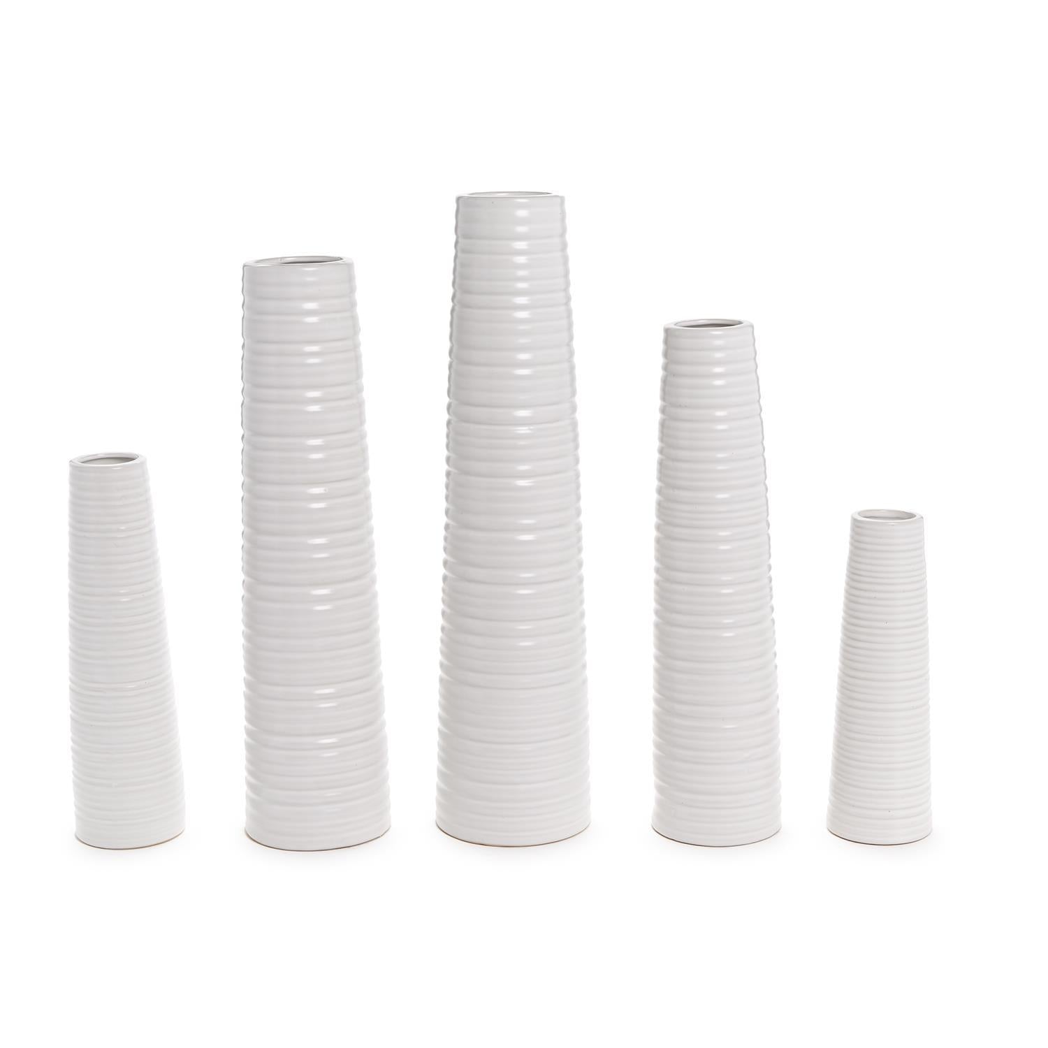 Transform your space into a tranquil oasis with this handcrafted ceramic cylinder vase collection. The soft white finish complements any dècor, while the ribbed texture adds a touch of sophistication. At 10in to 20in tall this set is perfect for displaying fresh flowers or branches. Handmade with care, it exudes elegance and charm.